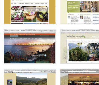 In studying identity for peers and like-minded businesses I found a consistent reliance on large, high-impact photography showcasing natural aspects and available amenities. Logos tended to be whimsical and artistic. At this time the client could easily advertise the beautiful surroundings but had not yet built up facilities; we would need to focus on environment, activities and cuisine.