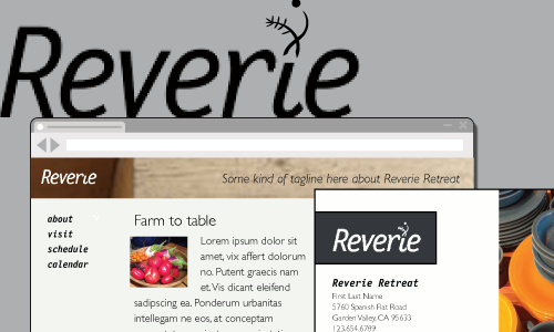 Reverie is a budding retreat center based in the sierra foothills, providing a farm-to-table outdoor event environment. The clients were ready to develop an identity as they began to market their business. Establishing a logo and basic design direction would allow them to both address and build a relationship with a new audience; this would also provide a base to develop a web presence that was needed at this point.
